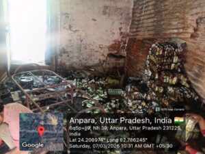 अनपरा में संदिग्ध परिस्थितियों में देशी शराब व चखना दुकान में भीषण आग