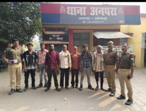अनपरा, सोनभद्र। अनपरा पुलिस ने दिनांक 07/03/2026 की 7 अभियुक्तों को शांति भंग करने के आरोप में गिरफ्तार कर मा. न्यायालय भेजा गया।श्रीमान् पुलिस अधीक्षक अभिषेक वर्मा जनपद सोनभद्र महोदय द्वारा अपराध एवं अपराधियों के विरूद्ध चलाये जा रहे अभियान के क्रम में अपर पुलिस अधीक्षक(मुख्या0)अनिल कुमार के पर्यवेक्षण एवं क्षेत्राधिकारी पिपरी हर्ष पाण्डेय के कुशल निर्देशन में थाना अनपरा पुलिस द्वारा क्षेत्र में अराजकता फैलाने व शांन्ति भंग करने के आरोप में 07 नफर अभियुक्तों को गिरफ्तार कर शान्ति भंग की धारा-170/126/135 BNSS में चालान कर मा0 न्यायालय भेजा जा गया ।गिरफ्तार अभियुक्त का विवरण –